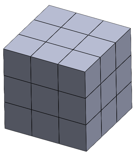 진후는 충명의 생일을 축하하기 위해 베라스킨벤스에서 케이크를 구매했다. 베라스킨벤스에서 파는 큐브 케이크는 다음과 같이 27개의 정육면체 조각으로 이루어져 있다.