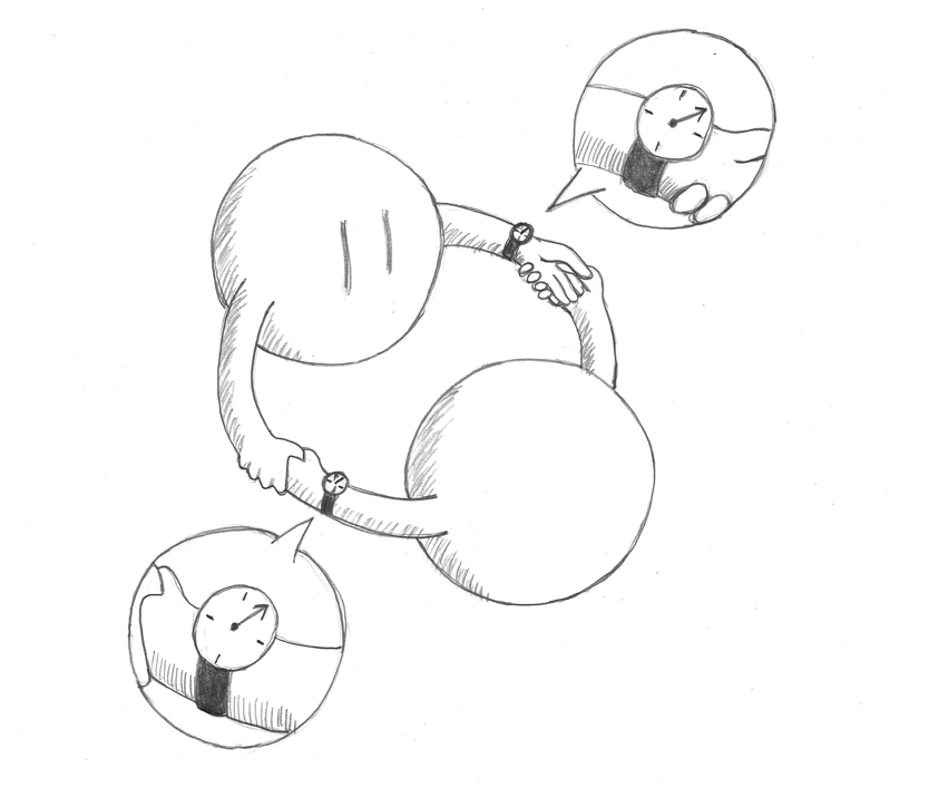 양자역학이 지배하는 미시 세계에서 모든 입자들은 양자 시계를 차고 다녔다. 양자 시계는 단 하나의 바늘을 가지고 있었다. 재미있는 것은 양자 시계 바늘의 길이가 늘어나고 줄어들 수 있다는 사실이었다. 이 사실은 미시 세계에서 굉장히 중요했다. 왜냐하면 양자 시계 바늘이 모든 입자들의 움직임을 결정했기 때문이다.