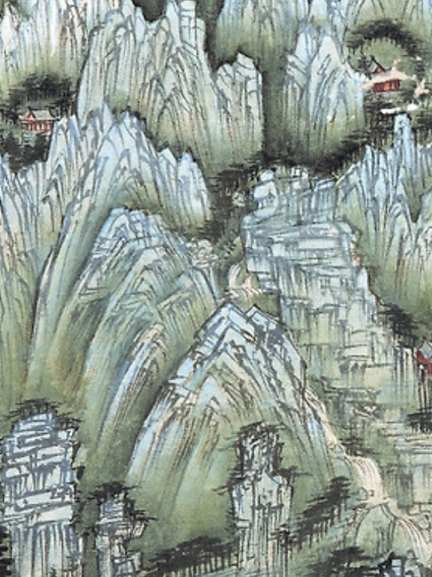 이라고 생각할 수 있다. 에너지 \(E(x)\) 는 음고의 비선형적 관계로 형성될 수 있고, 에너지의 경사에 따라 이 흐름이 멀리까지 가기도 할 테고 그러다가 다시 산세(山勢)가 험해지면 짧고 바쁜 걸음이 필요하기도 하다. 굳이 선을 다섯 개 그어 높낮이의 기준점을 줄 필요가 없게 된다. 그래서인지 정간보를 보고 있자면 흡사 풍광이 좋은 문인화를 보고 있는 느낌이 든다. 그림 속 길고 빈 여백들은 정간보의 텅 빈 공간처럼 지속적으로 흐르는 음악이 된다. 문자 그대로의 사운드스케이프soundscape라고 할까. 그림 1에서 왼쪽은 <여민락>의 정간보 악보이고 가운데는 겸재謙齋 정선鄭敾의 금강내산전도4, 金剛內山全圖 의 일부이다. 금강산의 가파른 봉우리 밑으로 폭포수처럼 길게 쭉 내려오는 형상은 gradient flow 를 설명하기 딱 좋다. 이렇게 정간보를 읽고 있자니 마치 수려한 산수를 감상하는 듯 하다. 오른쪽은 왼쪽 정간보를 본 연구단에서 개발한 시김새의 가사 줄 입력 방법을 이용하여 오선보로 변환한 악보이다5. 금강전도를 사이에 두고 사뭇 다른 느낌이다.