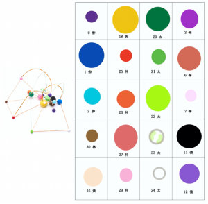 위상적 분석을 하기 위해서 우리 음악을 수학적 대상으로 변환하여야 한다. 그럼, 어떻게 변환할 것인가. 그 답은 유일하지 않다. 가능한 변환은 다양할 수 있는데, 우리 연구단이 처음 선택한 변환 방식은 매우 간단하다. 우리 음악을 그래프로 변환하였는데, 그래프를 \(G\) 라고 하면\(G\)는 노드node \(n \in V\)와 에지edge \(e \in E\)로 구성된다 \(G = (V, E).\) 노드는 음악 정보를 담고 있는 요소 혹은 점이고 에지는 그 둘 사이의 연결성connectivity이다. 만약 이 연결성에 가중치를 부여하면 그래프는 가중치 그래프 \(G_{w} = (V, E, W)\) 가 된다. 아이디어는 매우 간단하다. 정간보를 시계열데이터라고 생각하고 음고(\(p\)) 와 음가(\(d\)) 순서쌍으로 시계열을 구성하고 그 순서쌍을 \((p, d)\)라고 하자. 이 순서쌍을 노드로 정의해보자 \(n = (p, d).\) 만약 서로 다른 순서쌍 \(n_{i}, n_{j}\) 이 음악이 흐르면서 서로 연거푸 앞 뒤로 등장하면 이 둘을 연결하는데 이것이 바로 에지가 된다. 이 연결성에 가중치weight 을 주고 두 노드 사이의 거리로 정의할 수 있다. 인접한 두 친구 \(n_{i}, n_{j}\) 가 서로 붙어 사이 좋게 자주 등장하면 둘 사이는 가깝고, 그 등장 횟수가 적으면 아무래도 둘 사이가 그리 가깝지는 않다는 일상생활의 관습적 해석을 차용해서 두 노드 사이의 거리를 같은 식으로 정량화 할 수 있다. 서로 인접하지 않은 두 노드는 인접한 친구 노드를 타고 가면서 (친구의 소개로) 다른 노드에 도달할 수 있고, 그 사이의 거리를 합쳐 총 거리로 정의할 수 있다. 이렇게 그래프에 기하학적인 변량을 정의하여 가깝고 먼 개념을 도입하면 일종의 생김새를 덧입힐 수 있다. 한가지 흥미로운 것은 이렇게 만들어진 대부분의 국악 그래프에는, 어느 노드와도 연결되지 않는, 혼자 존재하는 고립된 노드가 없다는 것인데, 그렇게 되면 수학문제가 조금 간단해 진다. 이 거리에 대한 자세한 논의는 본 연구단의 최근 연구에서 찾아 볼 수 있다.16 실제로 <도드리> 그래프의 거리를 계산해 보면 이 노드들이 존재하는 공간은 유클리드 공간이 아님을 확인할 수 있다. 그림 6은 해금 <밑도드리>를 이런 식으로 표현해서 아이들의 놀이도구인 클레이를 이용해 3차원 구조물로 만들어본 음악 그래프이다. 그래프를 만들기가 너무 복잡하여 음악의 가장 중심 되는 황종17, 黃鐘을 중심으로 만든 부분 그래프subgraph , \(G_{s}, \ G_{s} \subset G\) 이다. 왼쪽 그림은 황종을 중심으로 한 \(G_{s}\)를 3차원에서 표현한 그래프이고 오른쪽은 그래프를 구성하는 노드를 나타낸 것이다. 비유클리드 공간이니 부득이 휘어진 에지를 사용할 수 밖에 없었고 그림에서는 휘어진 철사줄이 그것을 말해 준다. 노드의 크기는 노드의 음악 내 등장 빈도수에 비례하도록 설계하였다. 과연 기본음 답게 노란 황종이 가장 크게 보이며 중심에 자리잡고 있는 것을 볼 수 있다.