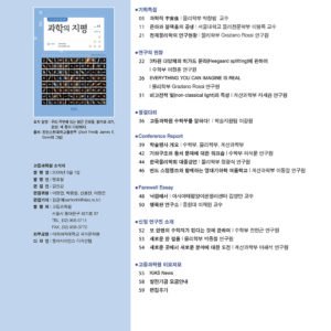 연구의 현장 22 | 3차원 다양체의 히가드 분리(Heegaard splitting)에 관하여 | 수학부 이정훈 연구원 26 | EVERYTHING YOU CAN IMAGINE IS REAL | 물리학부 Graziano Rossi 연구원 |