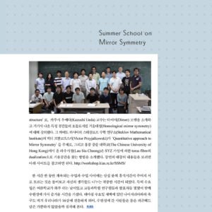 Conference Report41 | 학술행사 개요 | 수학부, 물리학부, 계산과학부44 | 거울대칭 여름학교 | 수학부 이화영 연구46 | 한국-프랑스 공동 가속기 물리 워크숍 | 물리학부 유채현 연구원48 | 제6회 전자구조계산학회 | 계산과학부 우성종 연구원 |
