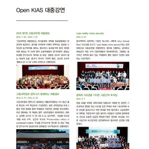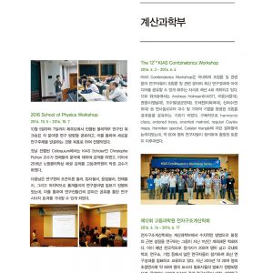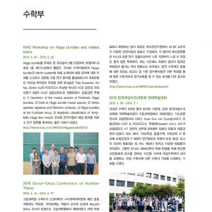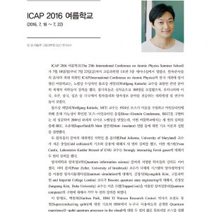 26 | Complex Geometry and the Cauchy-Riemann Equation 학회 후기 | 안태용, 고등과학원 수학부 연구원 28 | PLANCK 2016 그리고 ECFALC 2016 | 박재현, 고등과학원 QUC 연구원 30 | ICAP 2016 여름학교 | 이승우, 고등과학원 QUC 연구교수 32 | 학술행사개요 40 | Open KIAS 대중강연 |