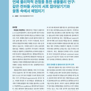 연구의 현장 18 | Frobenius Manifolds and Orbit Spaces | 수학부 Dafeng Zuo 조교수 22 | 연체 물리학적 관점을 통한 생물물리 연구: 같은 전하들 사이의 서로 잡아당기기와 꿀통 속에서 헤엄치기 | 물리학부 김용운 조교수 |