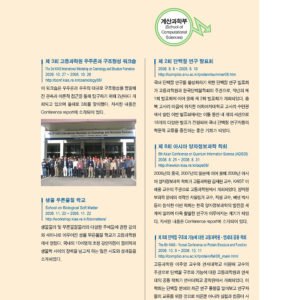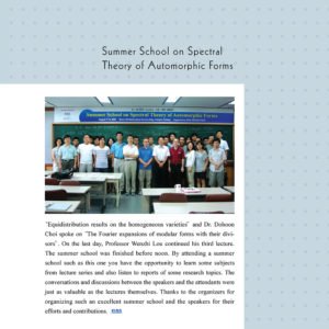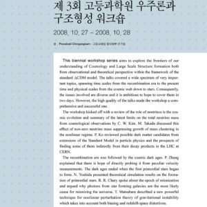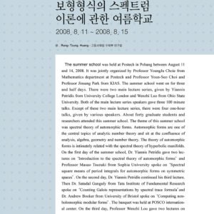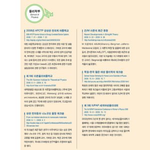 Conference Report37 | 학술행사 개요 | 수학부, 물리학부, 계산과학부40 | 보형형식의 스펙트럼 이론에 관한 여름학교 | 수학부 Rung- Tzung Huang 연구원 42 | 제 3회 고등과학원 우주론과 구조형성 워크숍 | 물리학부 Pravabati Chingangbam 연구원 |